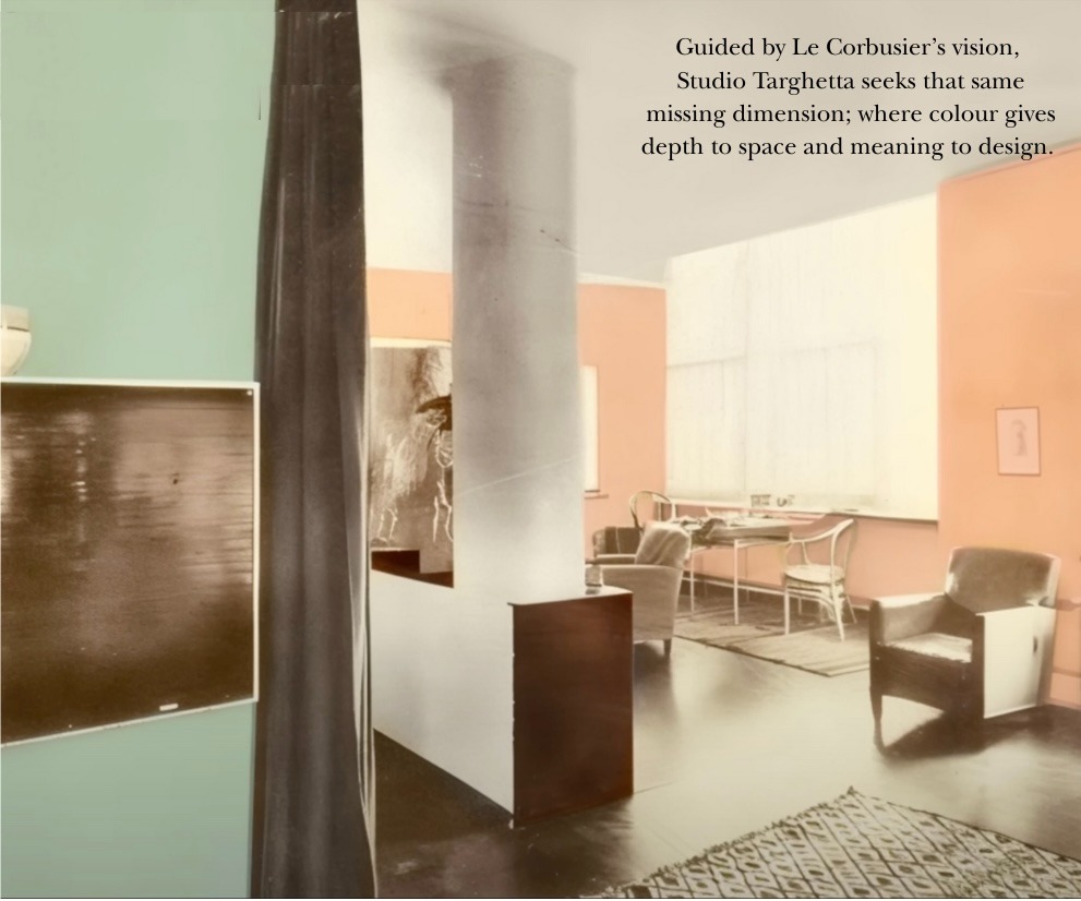 Guided by Le Corbusier’s vision, Studio Targhetta seeks that same missing dimensión, where colour gives depth to space and meaning to design.