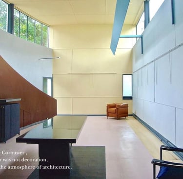 Through his Polychromie Architecturale, he demonstrated how tones could transform light, create depth, and alter the way space is perceived, turning colour into a true instrument of architectural emotion.